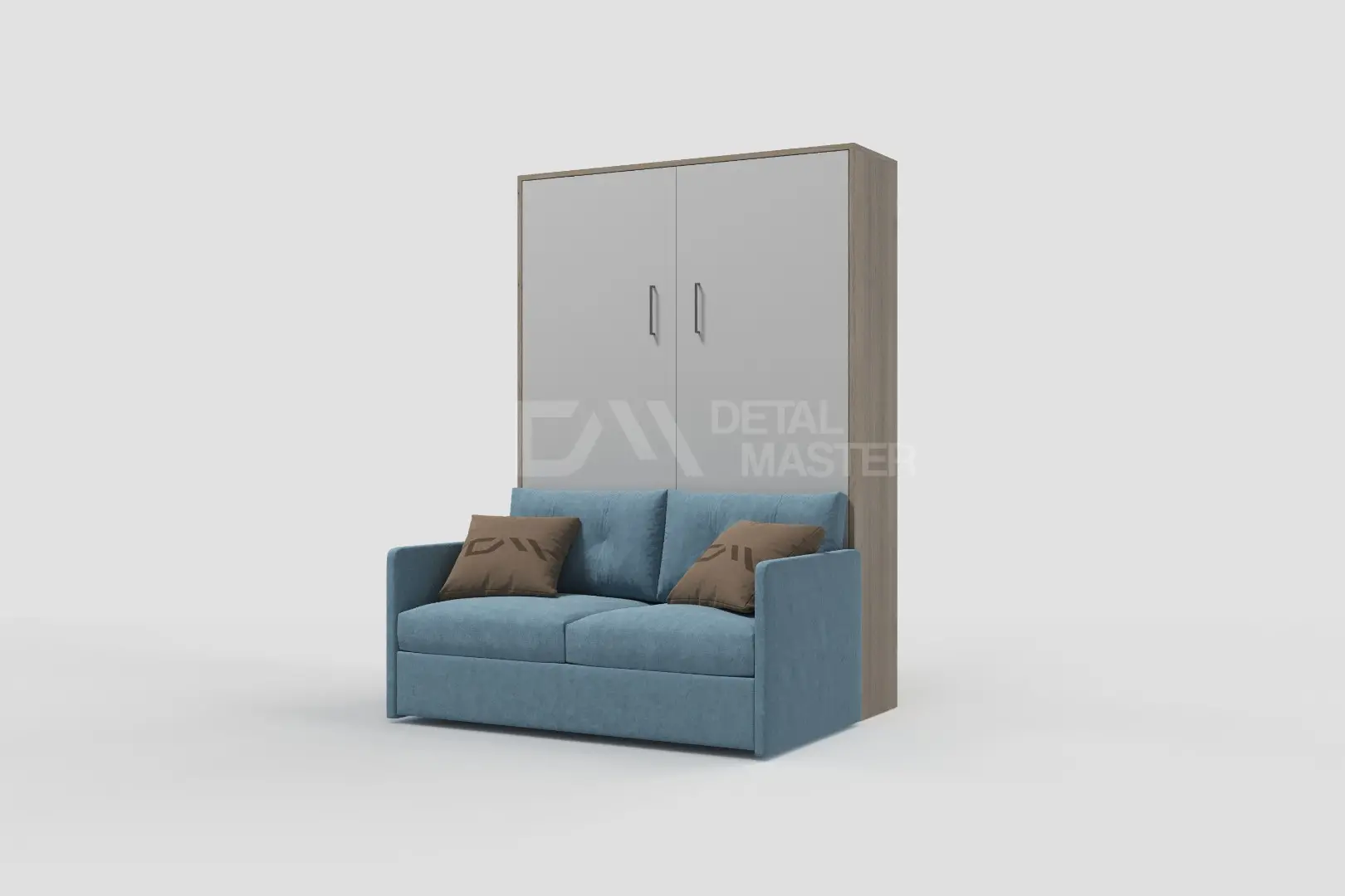 Шкаф-кровать "Simple Start Sofa" работает на механизме раскладывания собственной разработки "Start". Кровать раскладывается легким движением руки, превращаясь в полноценное спальное место. Просто потяните ее за ручки, расположенные на фасаде и выставите ножки-опоры.