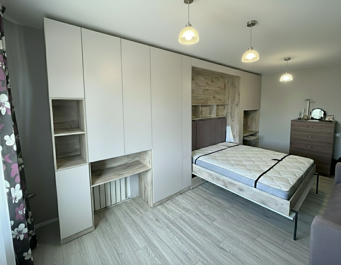 Шкаф-кровать трансформер является идеальным и необычным решением для создания уюта в помещении и дополнительного спального места. Примеры наших работ и готовых шкафов-кроватей трансформеров вы можете просмотреть в нашей фотогалерее, здесь представлены фотографии различных моделей, которые помогут вам оценить и выбрать подходящий дизайн и стиль для вашего интерьера.